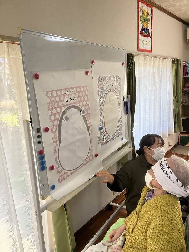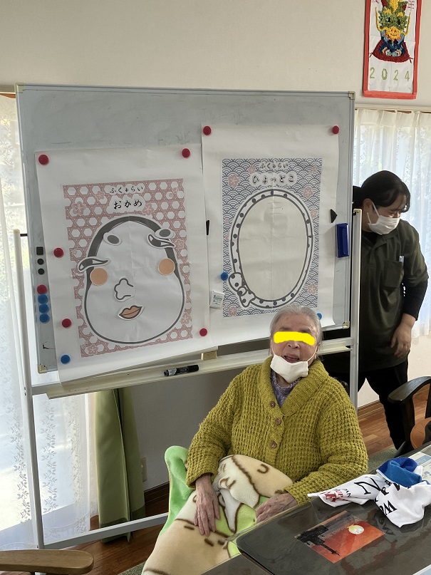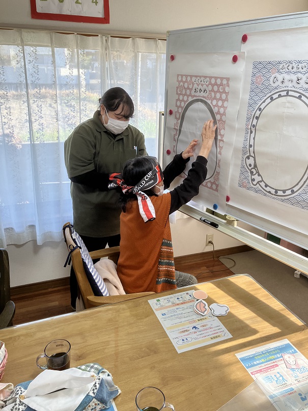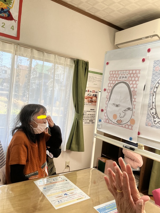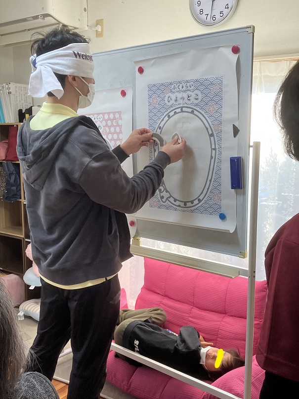 そしてわかばに戻ってからは福笑いをしました。みんなであーでもないこーでもない!
