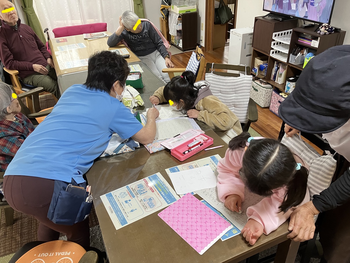 今日の児童は小学校1年生。共に学校の宿題を始めましたが、うーんうーんと唸りながらしていました。職員たちが教えて助けようとしましたが、1年生の問題って単純な問題過ぎて教えることが難しいのです!ヒントを出そうにもそれが直接ほぼ答えになってしまいます。国語の問題は、ひらがなをカタカナに直しましょう。算数の問題は、時計の針は何時何分になっていますか?などなどです。