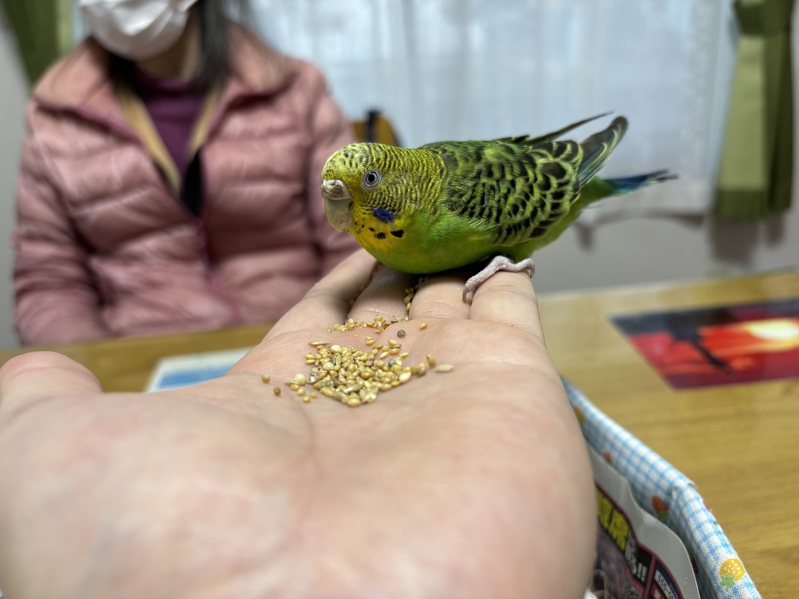最近では掌にも乗ることが出来るようになり、手の上でご飯を食べることも出来るようになりました。