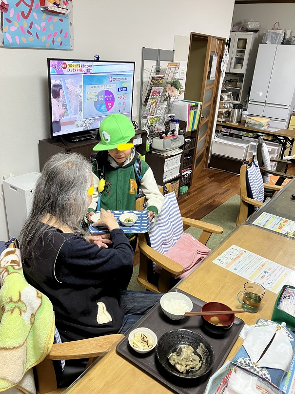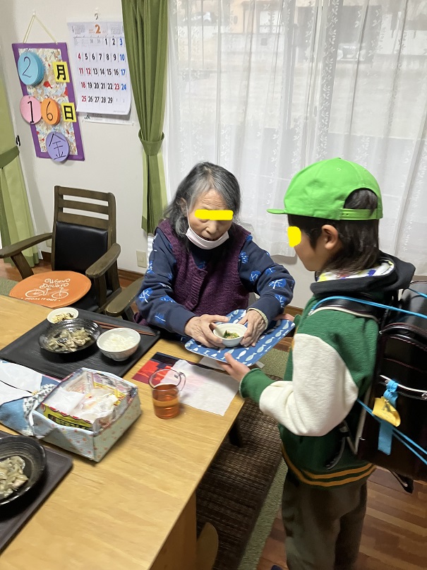 おかずを一つのせ忘れていたので帰り支度の終わった児童に