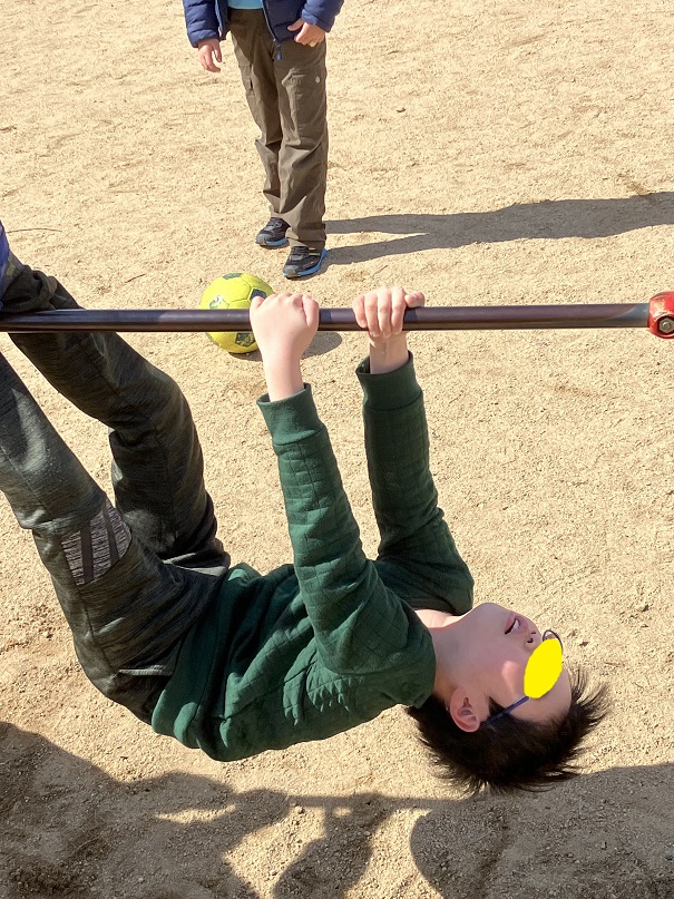 そして少ないながらも遊具があり、その中でもブランコと鉄棒は人気です。