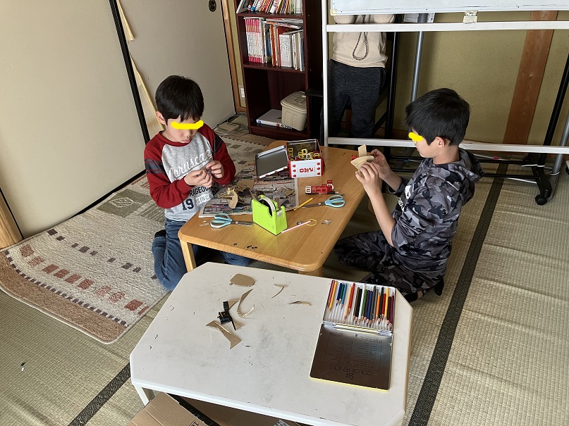 わかばに来てくれている児童たちは一人が段ボールで工作を始めると