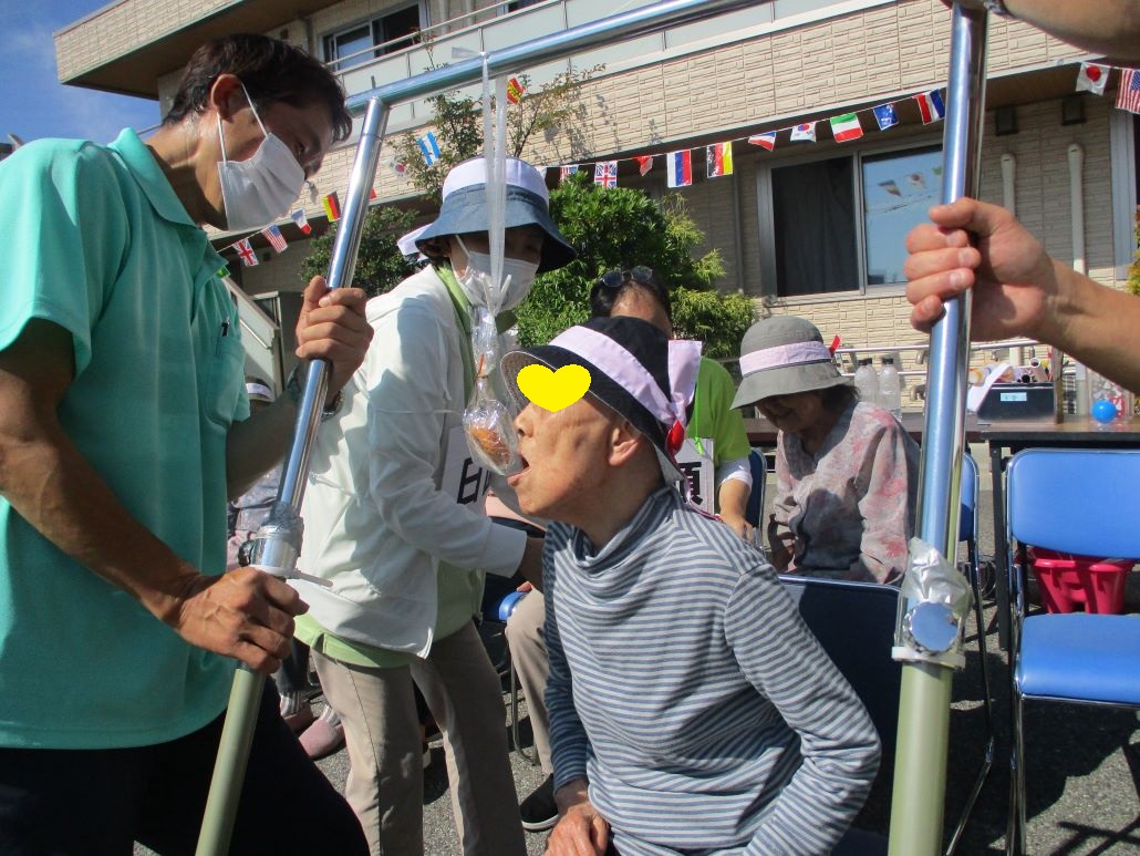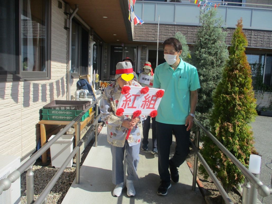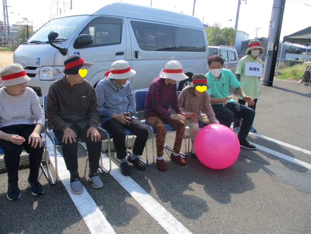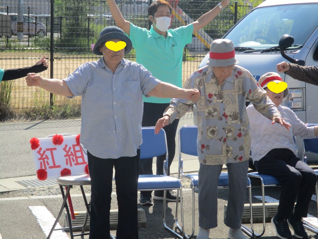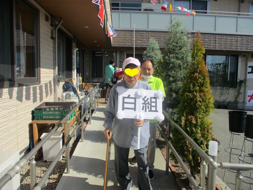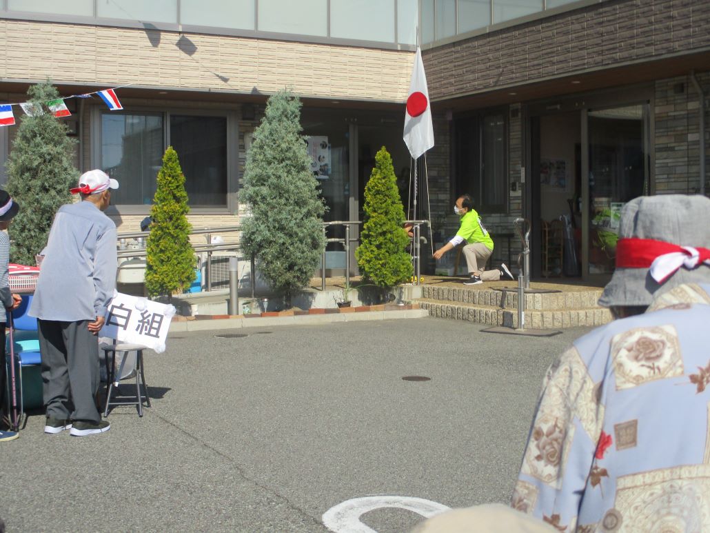 デイサービスでは、そんな強い日差しの下で、今日も運動会を開催いたしました。