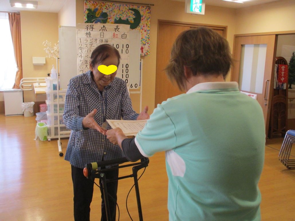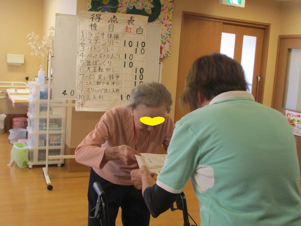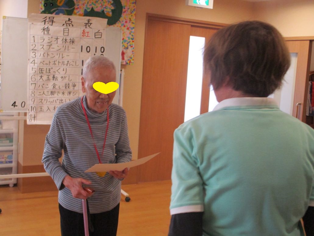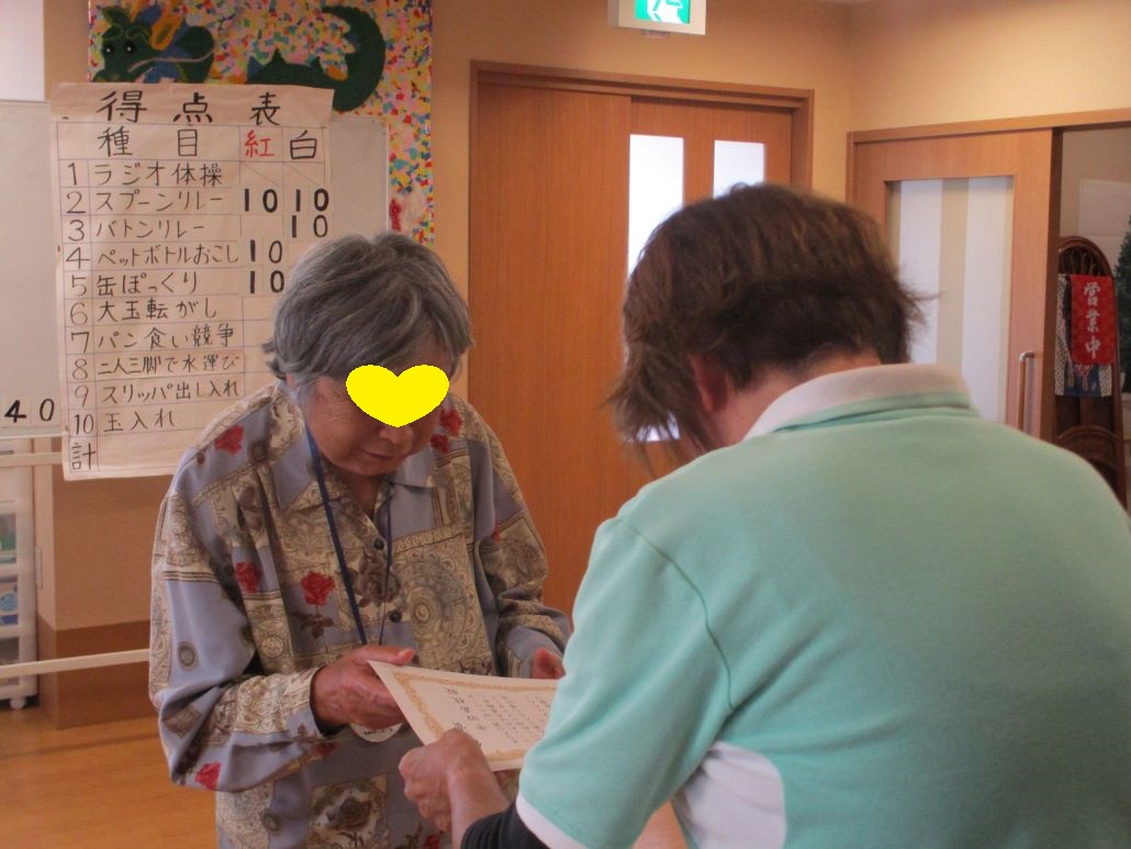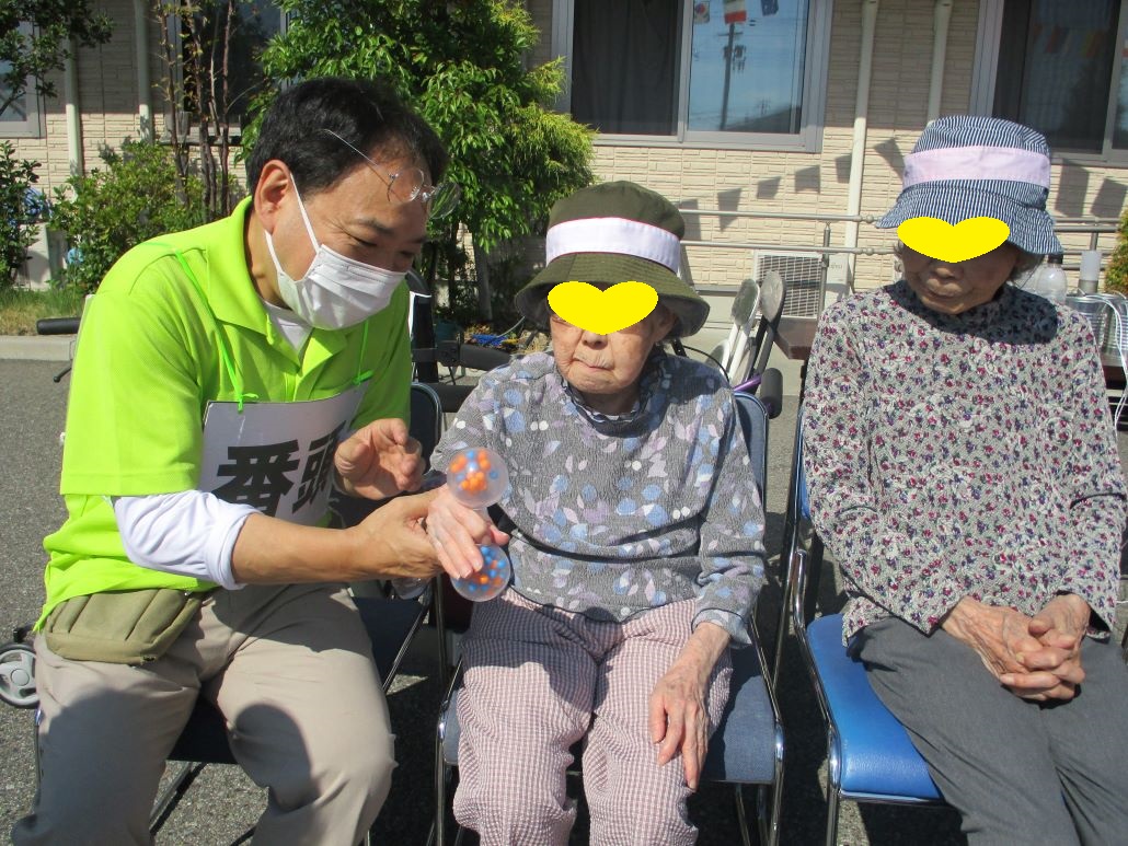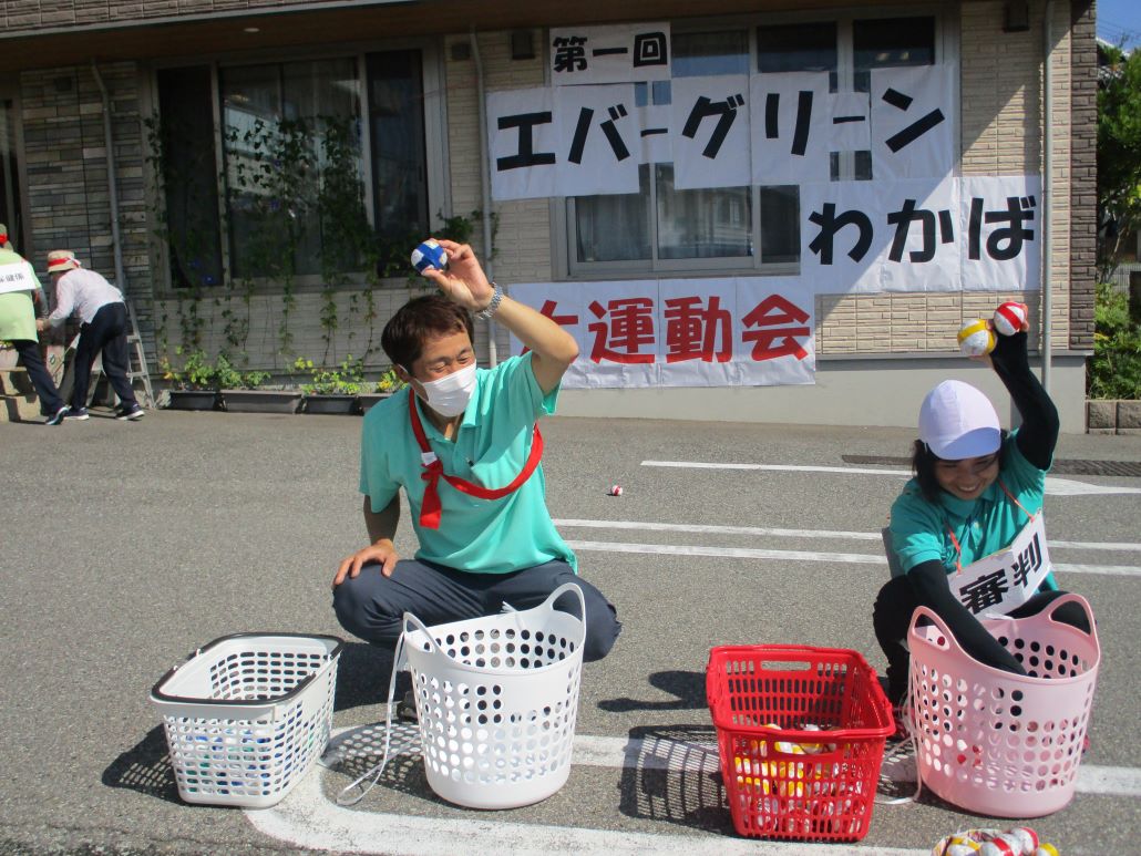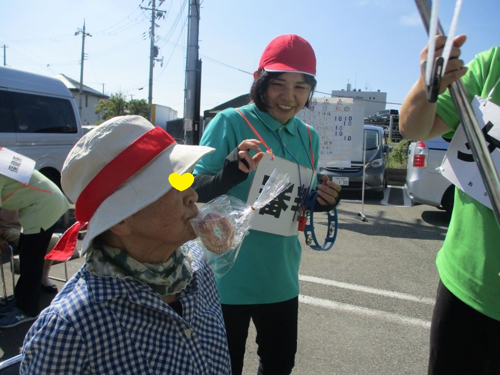 デイサービスでは、そんな強い日差しの下で、今日も運動会を開催いたしました。