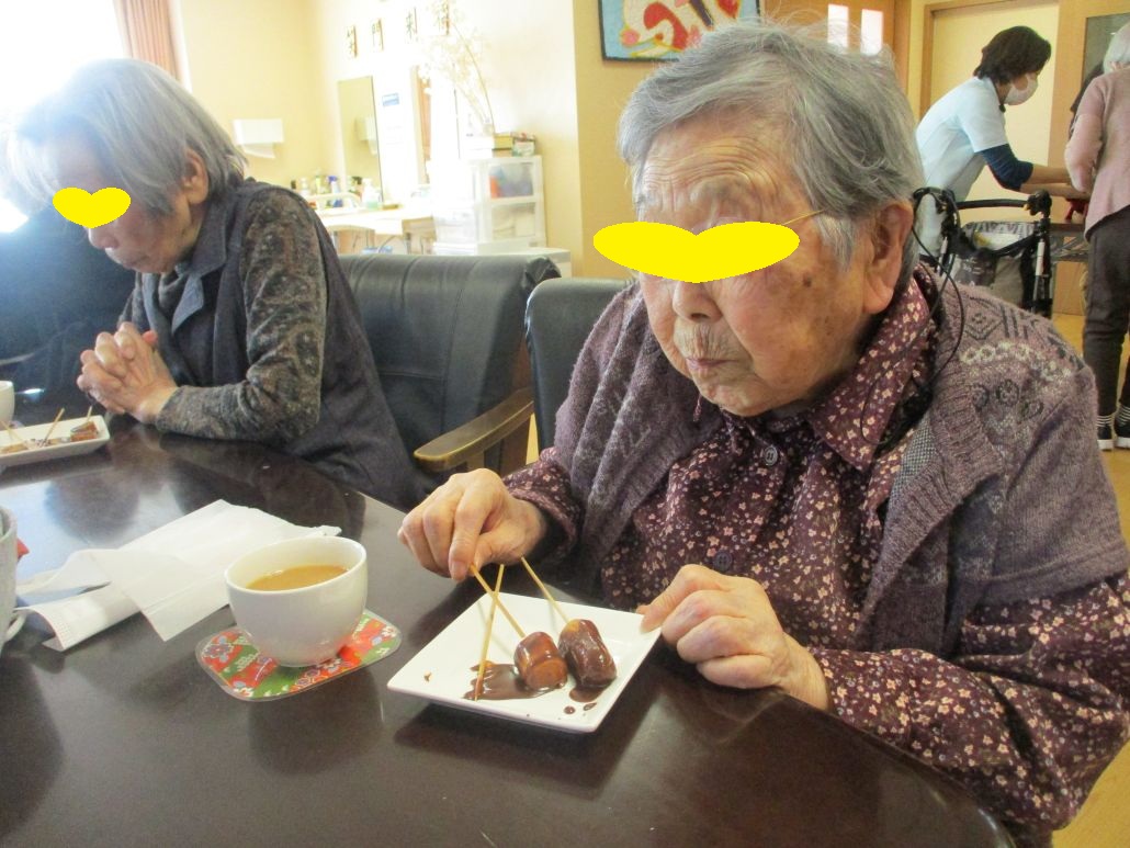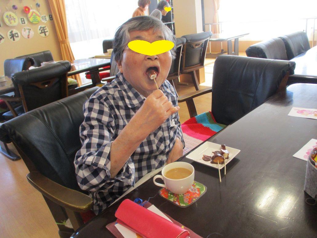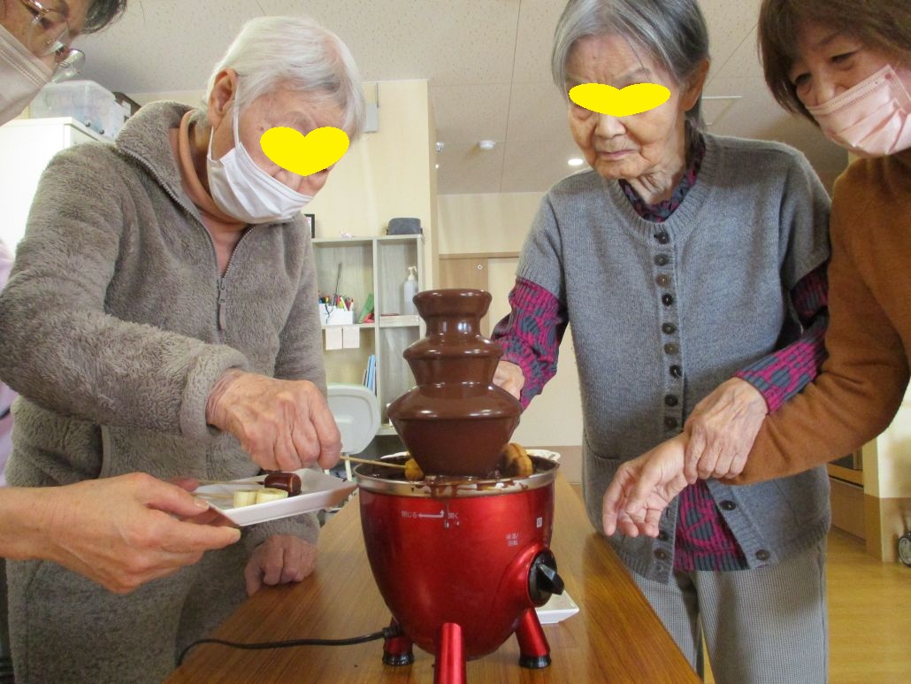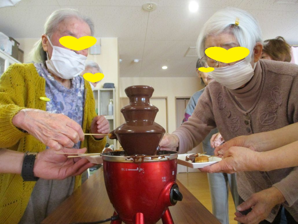 エバーグリーンわかばの職員は、利用者様が大好きなので、今年はチョコレートをおやつにしてみました。