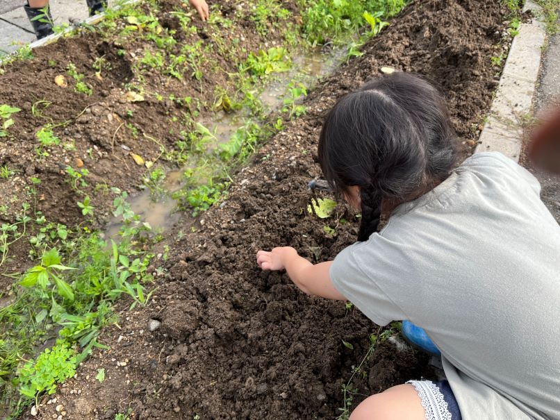雨で土も湿っているので、児童たちが掘るにはもってこいです。