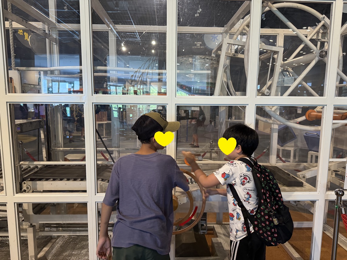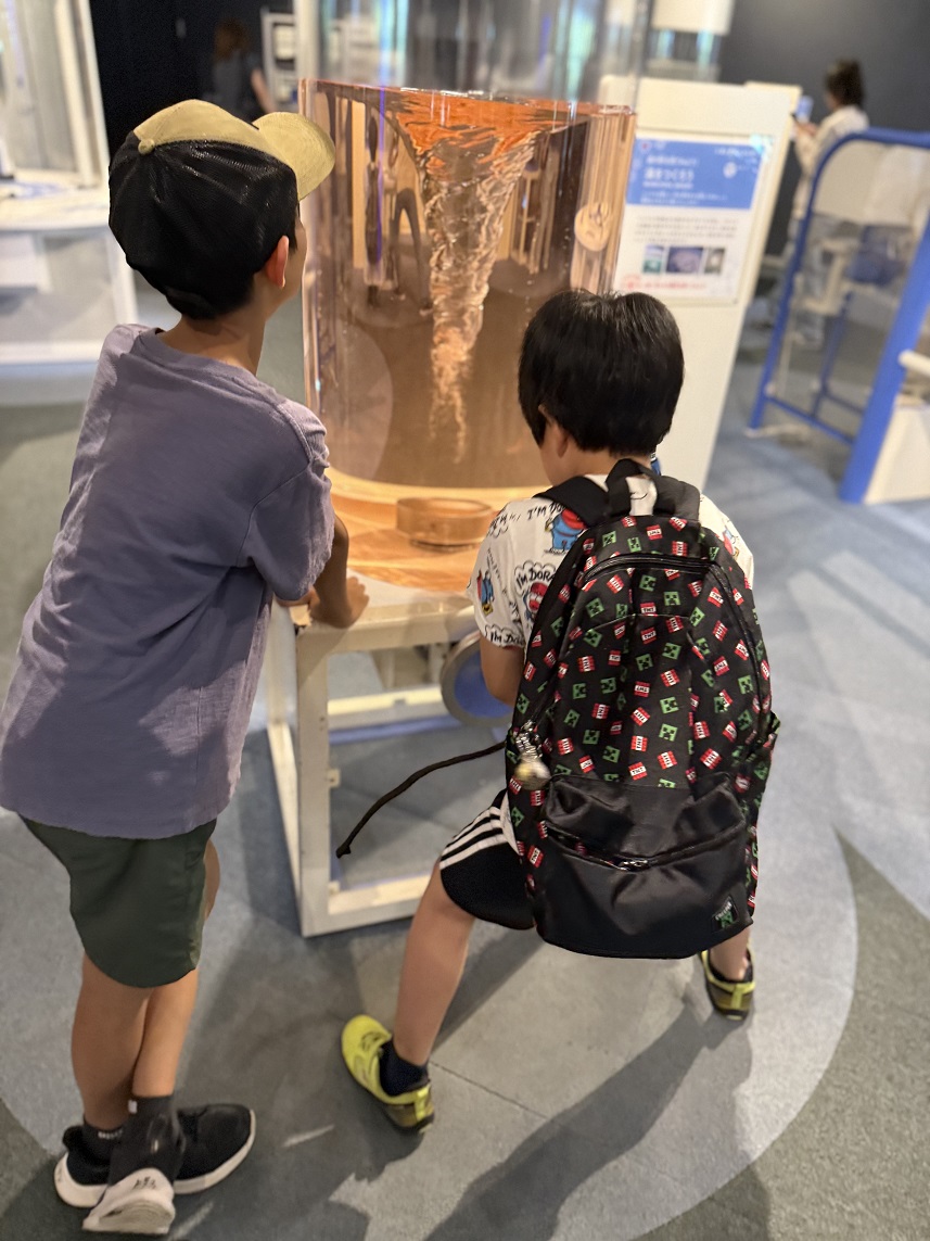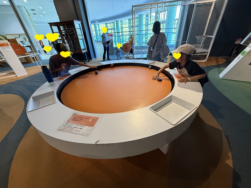 3階の「身の回りの科学」のフロアでは、体をめいっぱい動かしながら、筋トレさながら(笑)に実験を楽しみました。