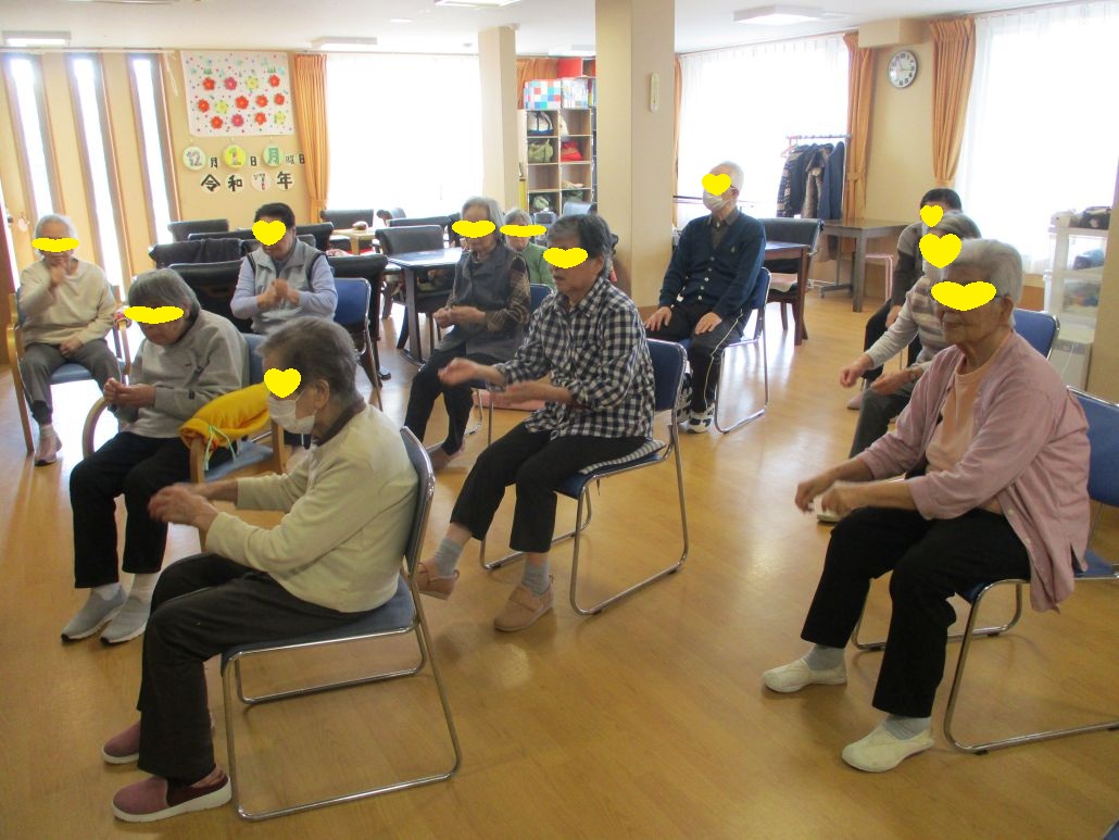 今日は、音楽に合わせて体操をしてみました!