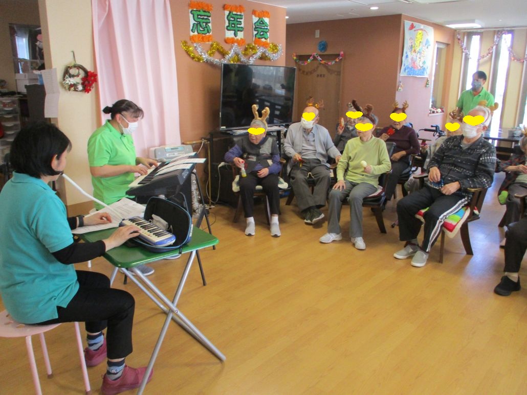職員の演奏に合わせて、歌や楽器演奏をしました。
