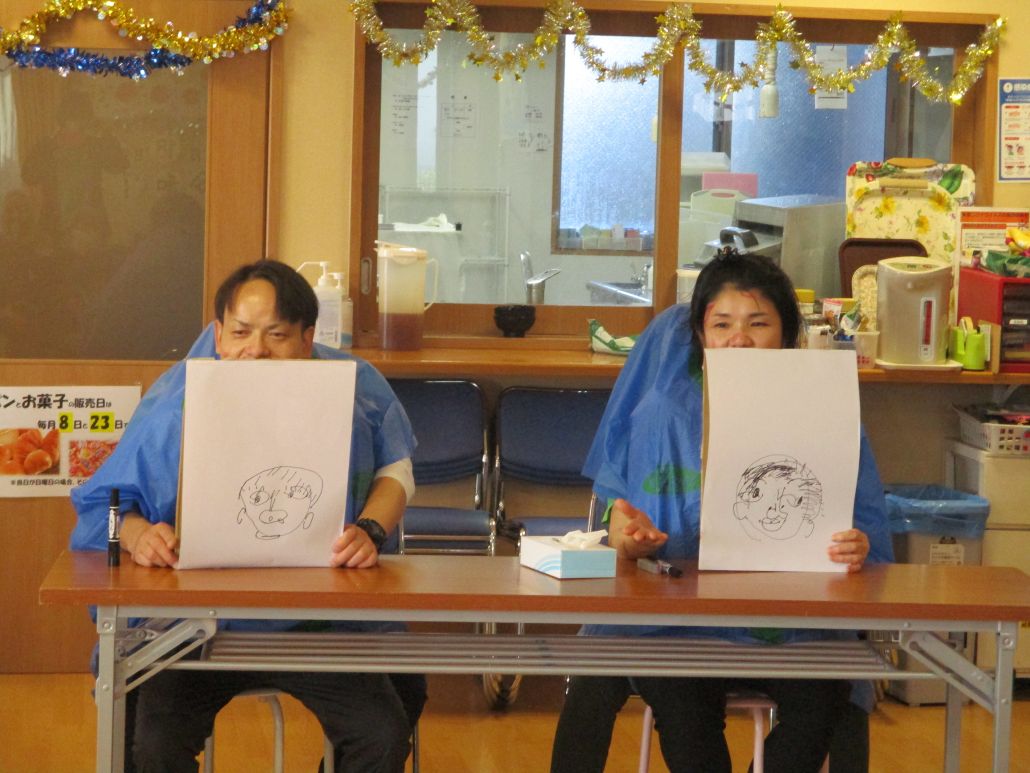 口紅を塗って、おそばを食べて、似顔絵を描いてもらいましたよ!