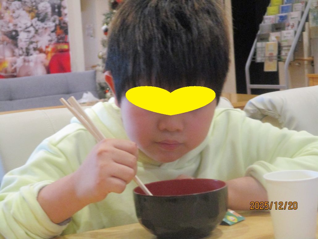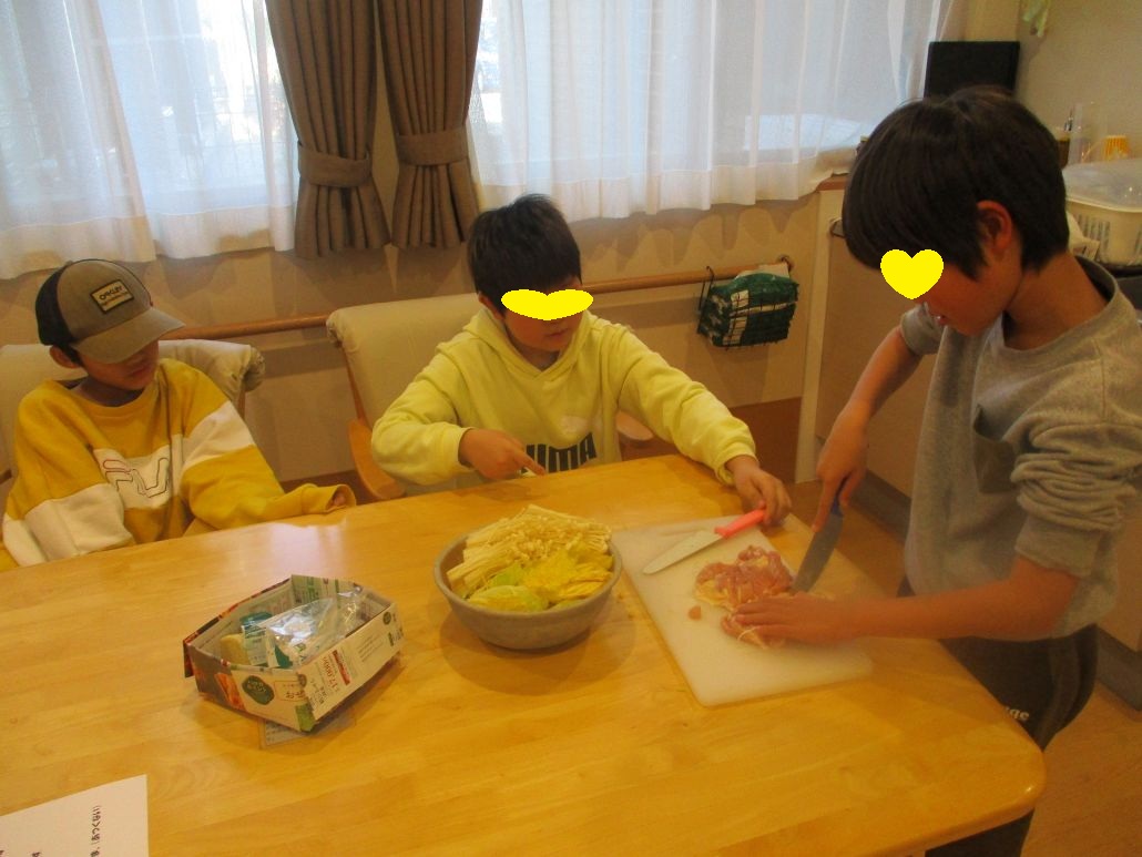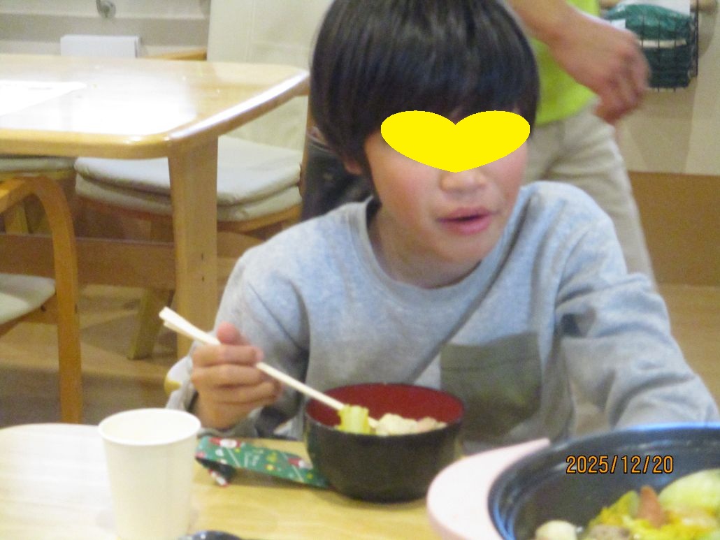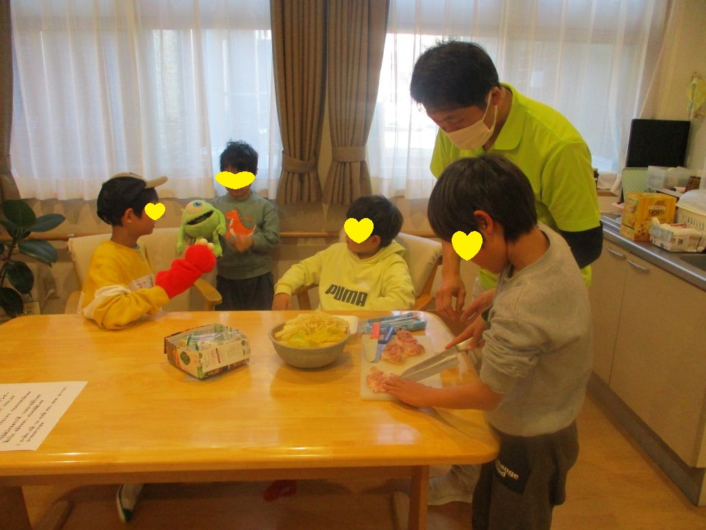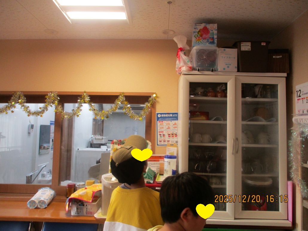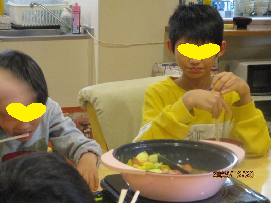 高齢者様が忘年会をしている間に、児童達は自分達の昼食を作っていました!