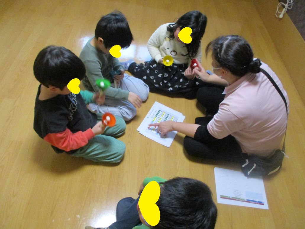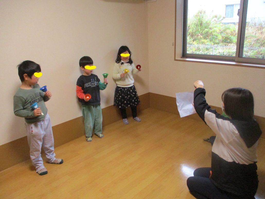 ハンドベル!!午前中に練習をして、午後に高齢者様の前で披露します!