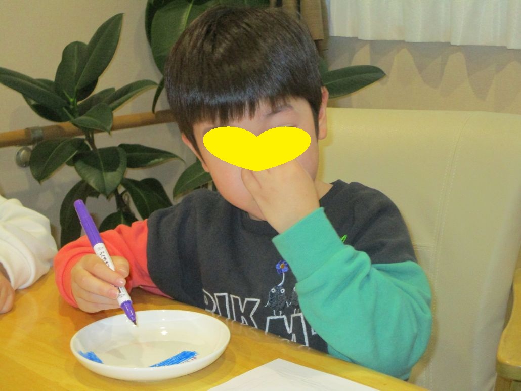 お皿に好きな絵を描きました!
