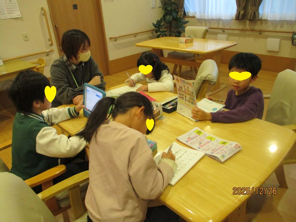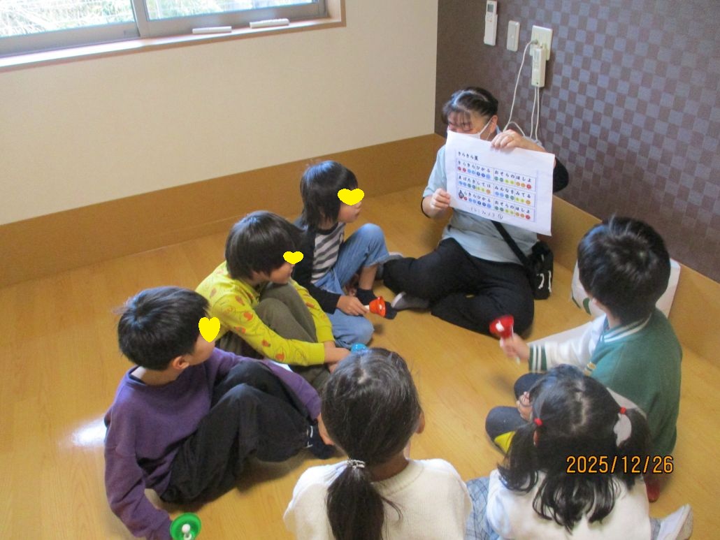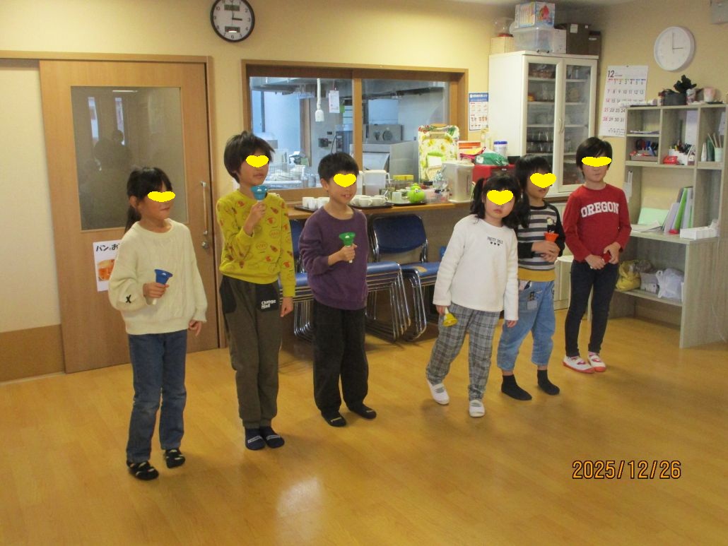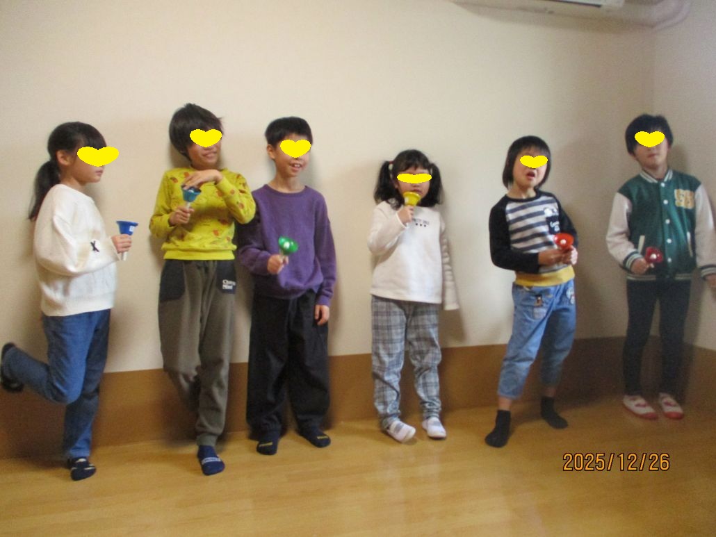 宿題が終わると、ハンドベルの練習をしました。今日も高齢者様に披露しますよ!