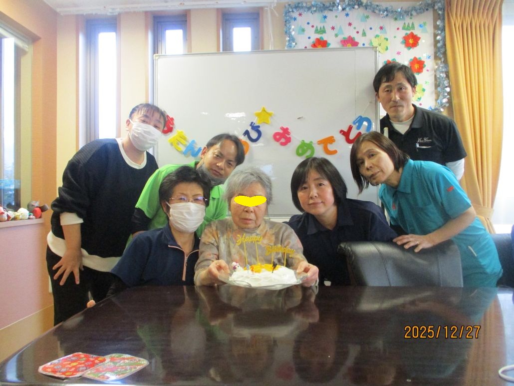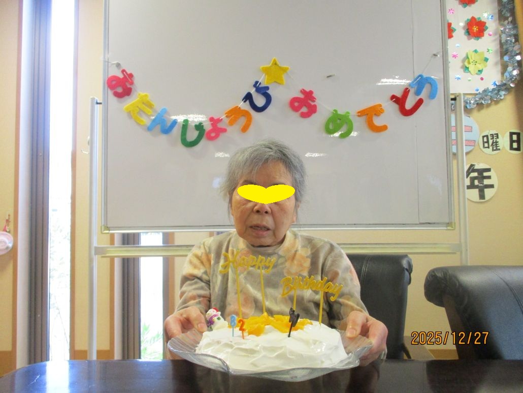 12月31日がお誕生日ですが、デイサービスはお休みなので少し早いですが、お祝いしました!