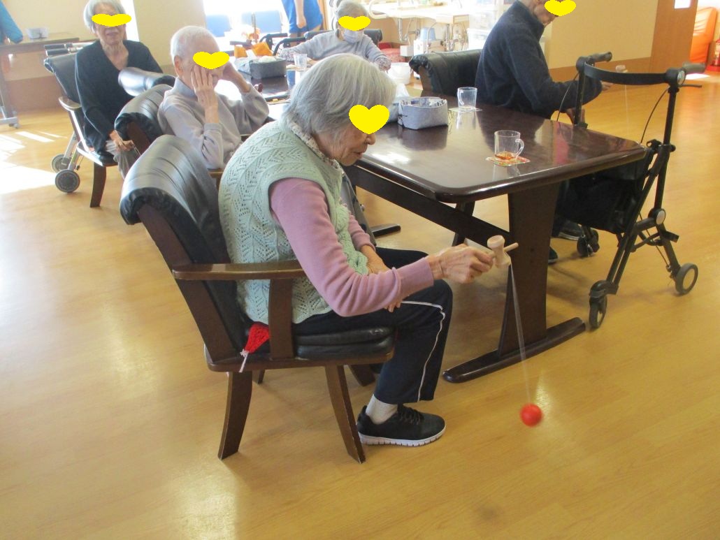 高齢者様は、フロアでお正月の遊びをしました。
