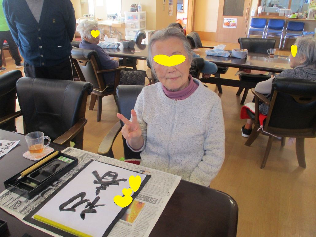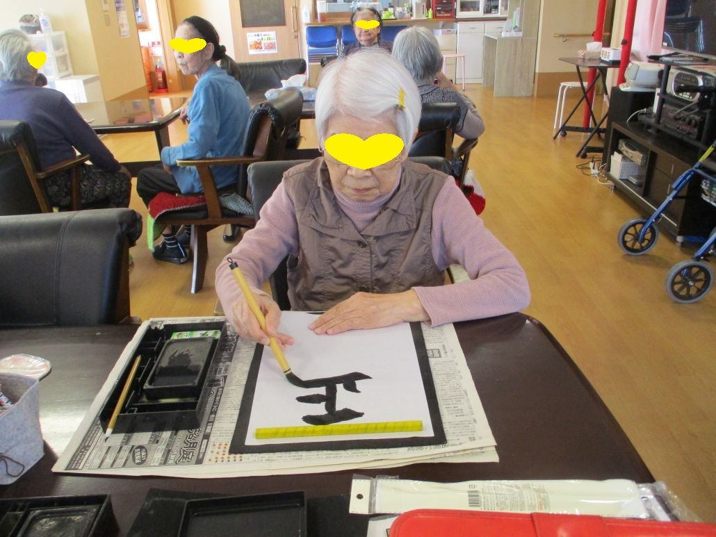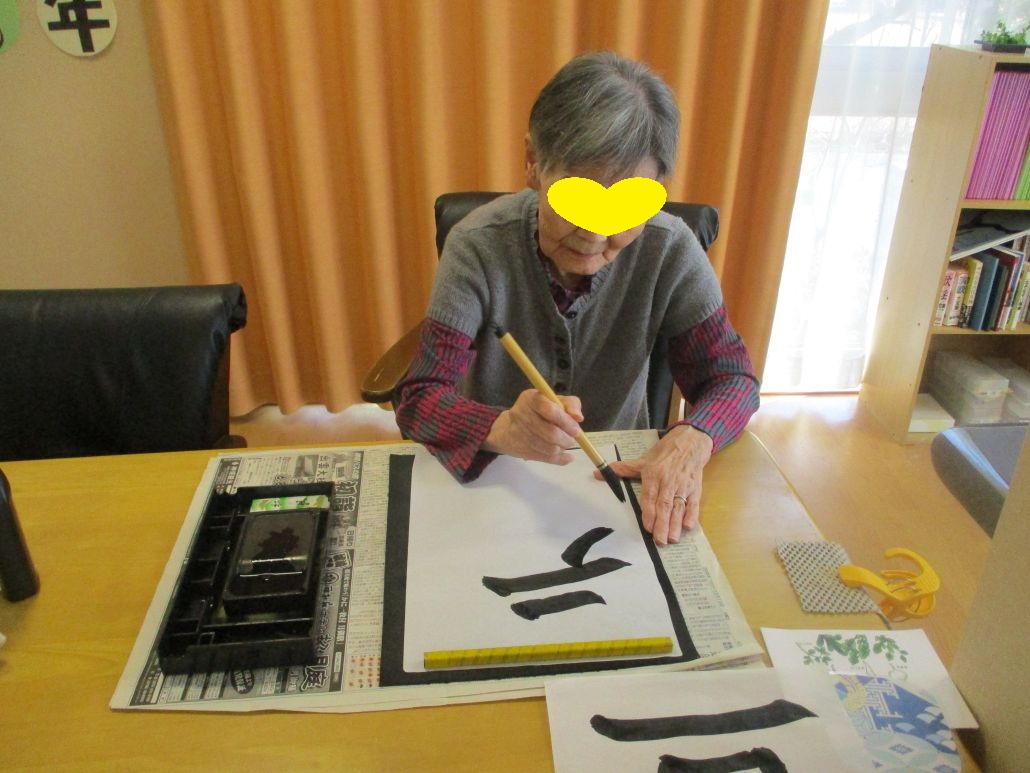 高齢者様は、書き初めをしました。