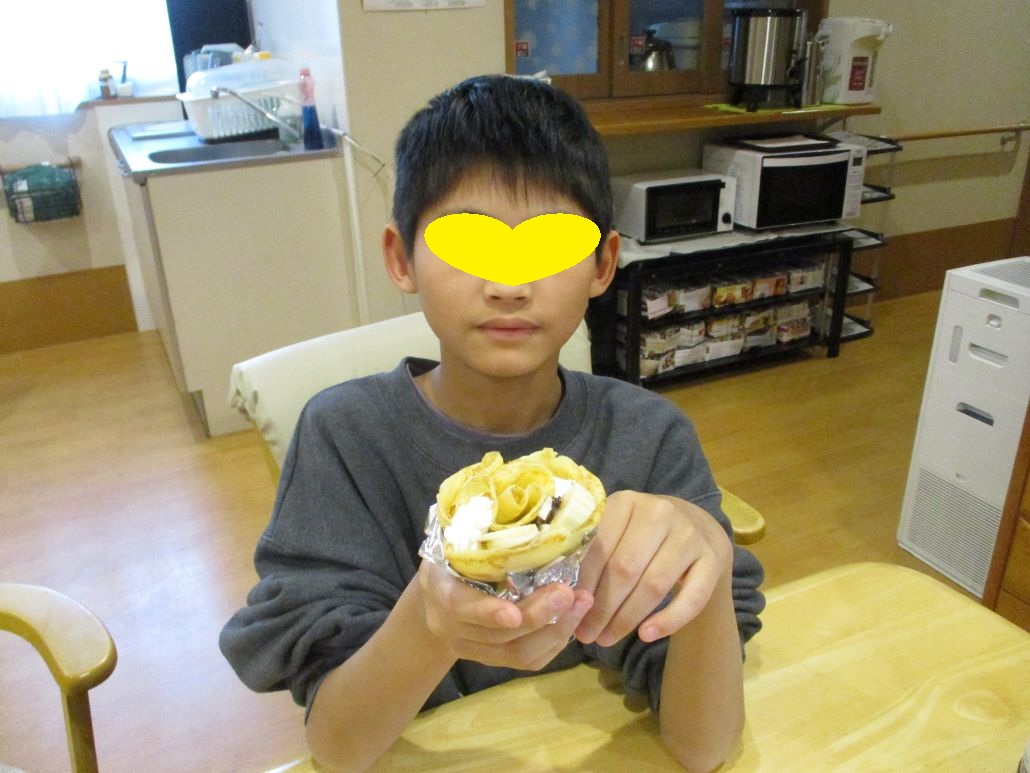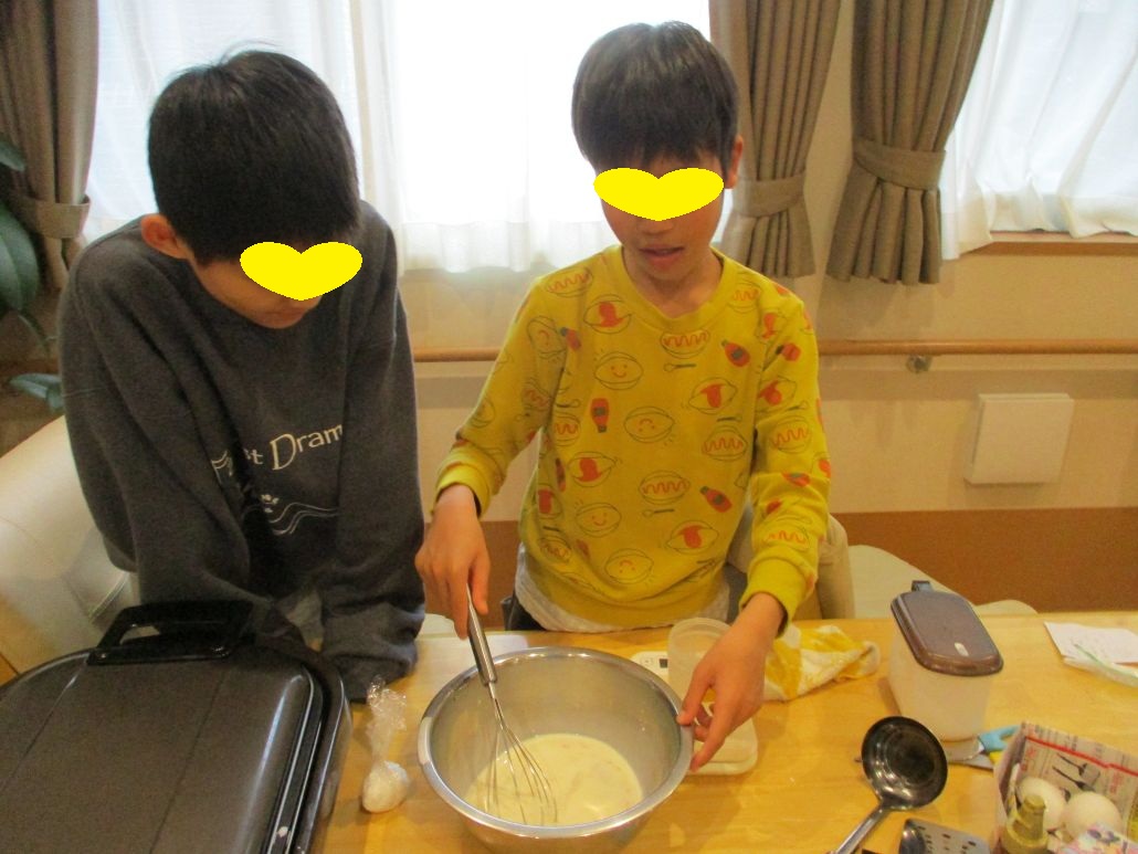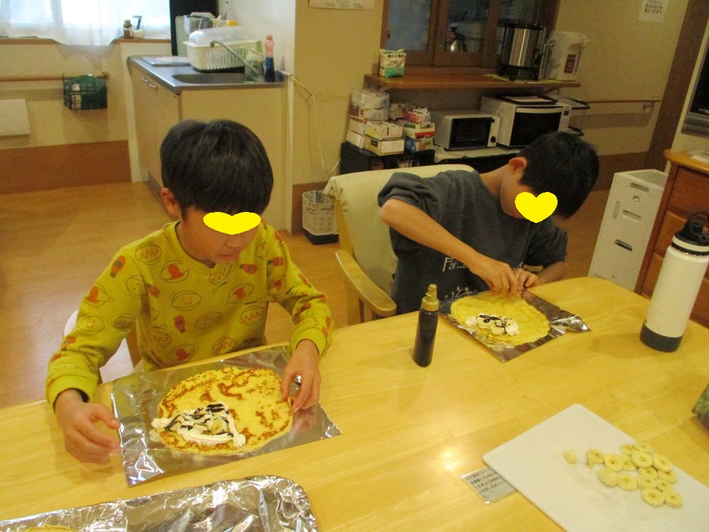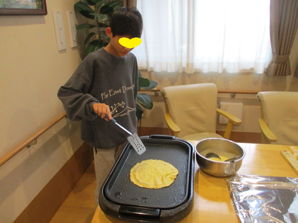 先週の土曜日に児童達と約束をしていたので、おやつにクレープを作りました。