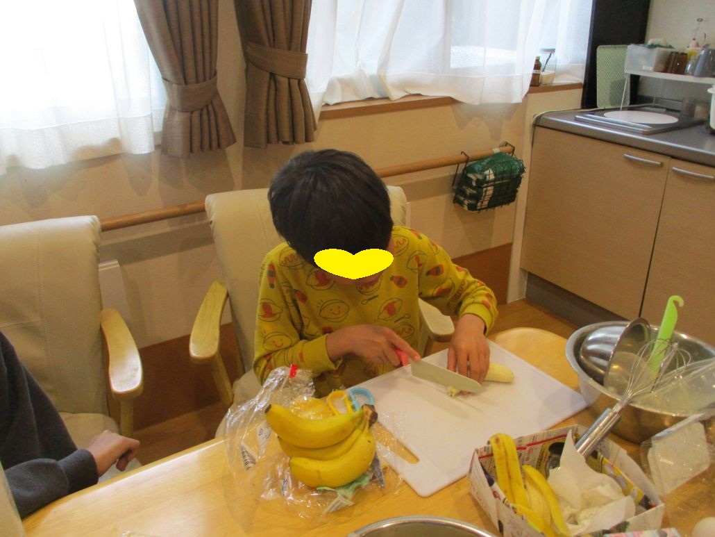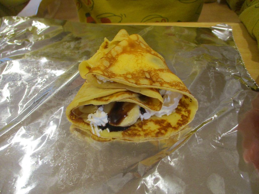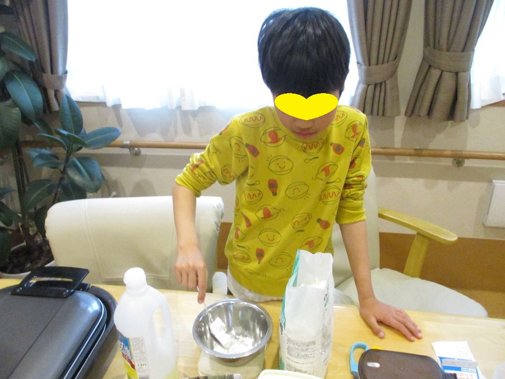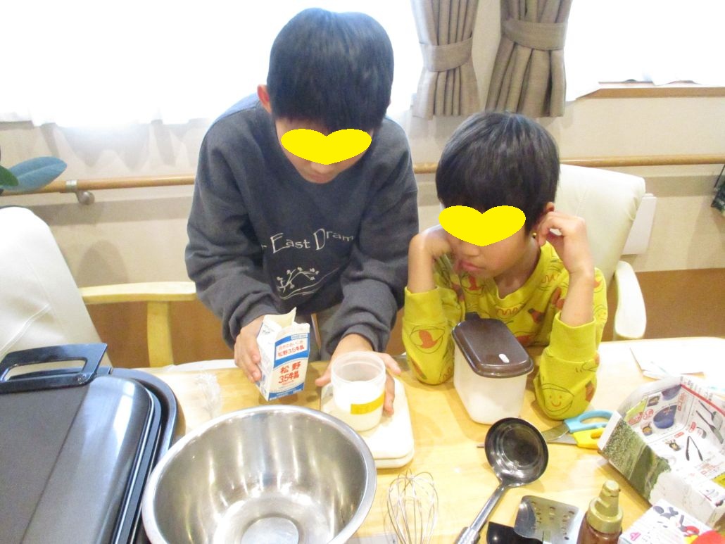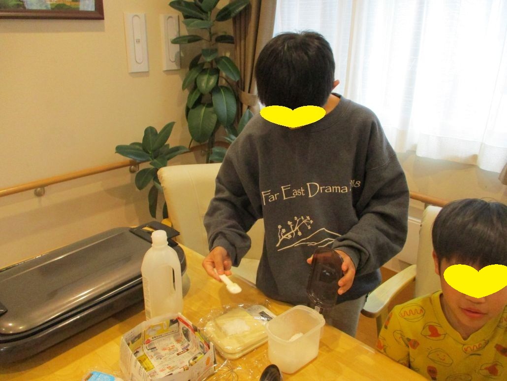 先週の土曜日に児童達と約束をしていたので、おやつにクレープを作りました。