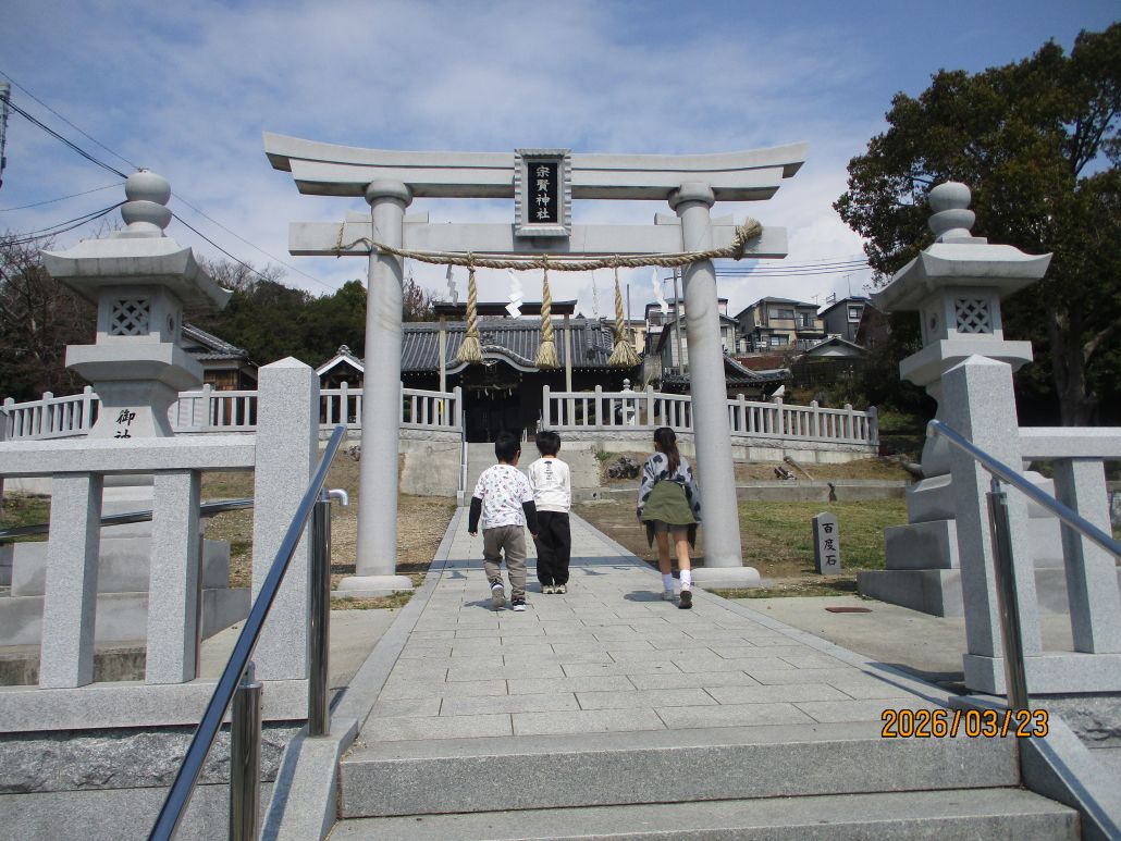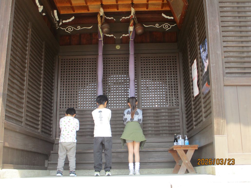 神社に着くと、「鳥居の前で、お辞儀するんやで!」と、1人の児童が教えてくれました。
