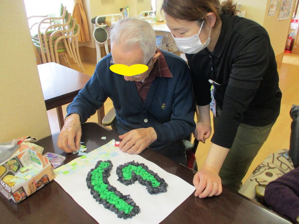 4月のカレンダー作りが終わった利用者様に、手作業のお手伝いをお願いしました。